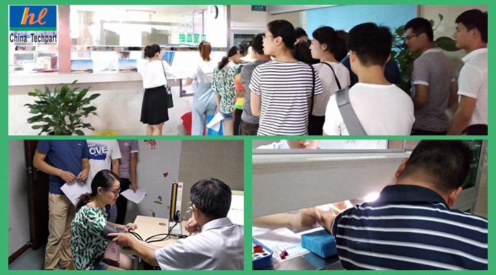 早晨9点左右,员工们分批进行了各项身体检查,包括内外科、验血、彩超等十几项检查项目;公司的发展离不开员工们辛勤的付出,公司在创造价值的同时,没有忘记员工们的身体健康,保障员工的身体健康也是公司的社会责任,只有保证员工们的身体健康,公司才能绿色、安全、健康的发展;